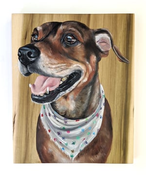 Immortalize your pet with paint! Send me a few of your favorite pet photos ([email protected]) and I can get started! All paintings are finished with wipe on poly seal to protect the wood and paint and will have a wall hanger installed on the back.